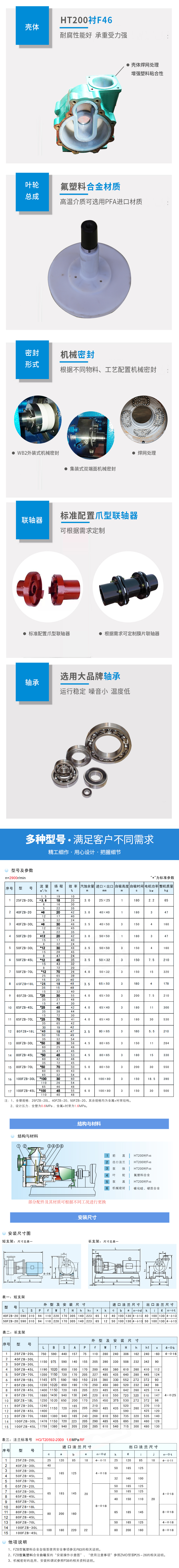過流部件采用氟塑料、氟塑料合金制造,耐腐蝕性能優異?;w采用金屬材料制造,耐壓能力強。
