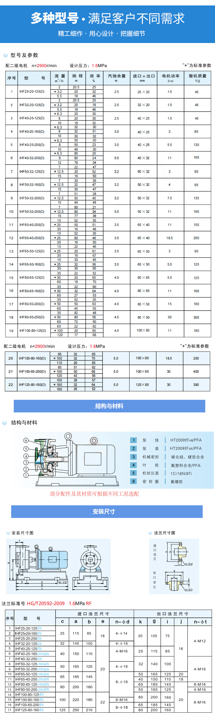 IHF(D)型離心泵是IHF型離心泵的派生產品,是為滿足IHF離心泵性能要求同時受工作場地限制而研制的產品。所有過流部件均采用氟塑料或氟塑料合金制造,耐腐蝕范圍廣;基體采用金屬制造,承壓能力強;軸封采用先進的WB2型外裝式波紋管機械密封,密封性能可靠;采用短支架直連結構,葉輪軸與電機軸采用可靠的莫氏錐度傳遞扭矩,泵機占地面積小。